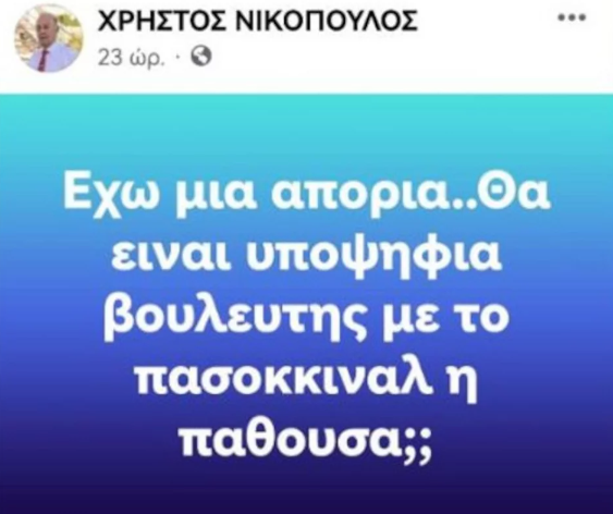 Ο Χρήστος Νικόπουλος ήταν επί χρόνια αγροτοσυνδικαλιστής με το ΠΑΣΟΚ και μεταπήδησε στον ΣΥΡΙΖΑ πριν από περίπου δέκα χρόνια.