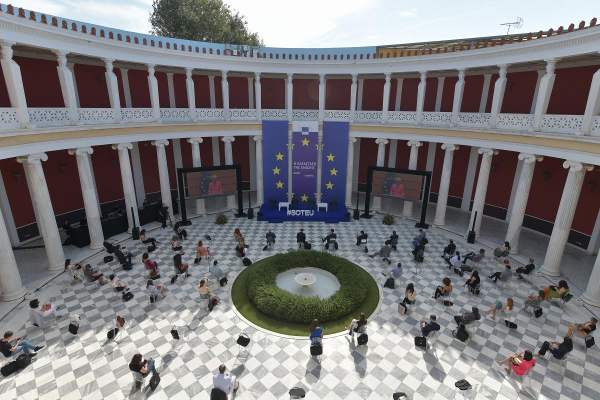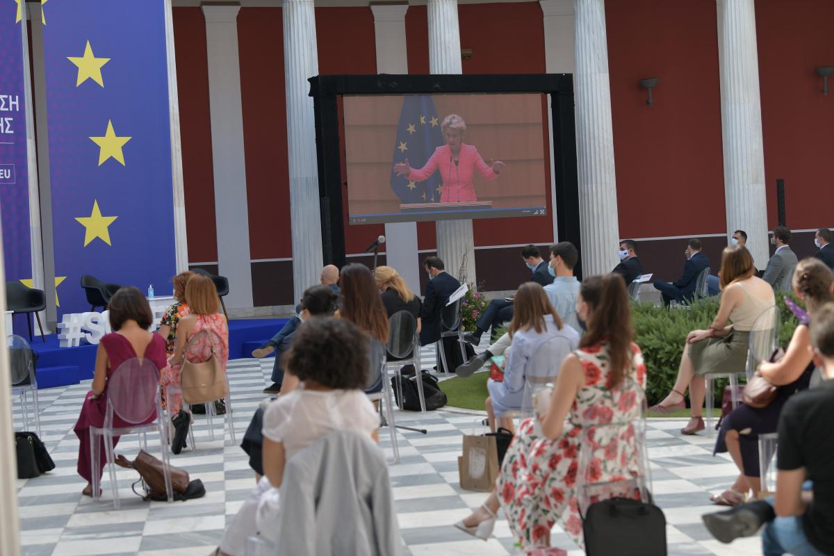 Με αφορμή την πρώτη ομιλία της Προέδρου Ursula von der Leyen για την Κατάσταση της Ένωσης, η Αντιπροσωπεία της Ευρωπαϊκής Επιτροπής στην Ελλάδα, διοργάνωσε εκδήλωση στο Ζάππειο Μέγαρο με τη συμμετοχή περιορισμένου αριθμού (λόγω μέτρων ασφαλείας) δημοσιογράφων και σπουδαστών της Εθνικής Σχολής Δημόσιας Διοίκησης και του Εθνικού Κέντρου Δημόσιας Διοίκησης και Αυτοδιοίκησης.