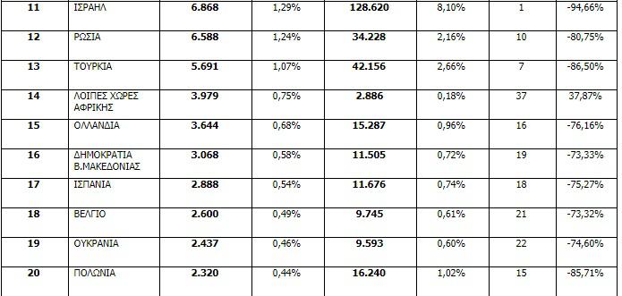 | ΙΣΡΑΗΛ | 6.868 | 128.620 | -94,66% |