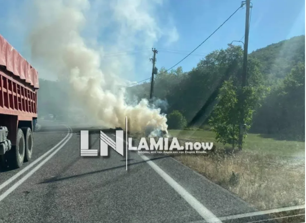 Όπως μετέδωσε το lamianow, οι φλεγόμενες μπάλες έπεσαν στο οδόστρωμα από τρακτέρ πριν το αντιληφθεί ο οδηγός και λόγω των έντονων ανέμων άρπαξαν φωτιά τα πρανή, ακόμη και κολόνες της ΔΕΗ.