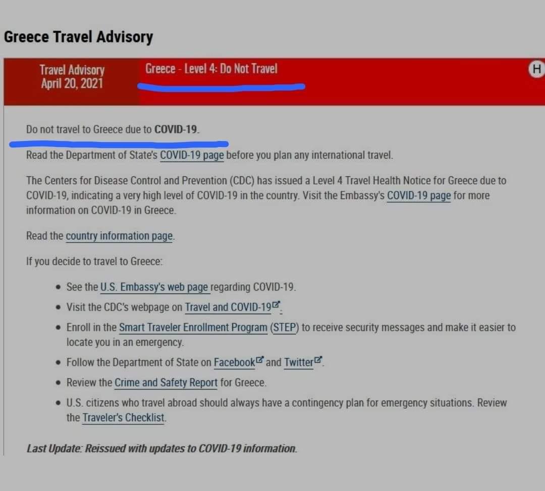 Και ενώ από χθες ανακοινώθηκε επίσημα από τον ΠΘ ότι στις 15 Μαϊου ανοίγει ο τουρισμός για όλες τις χώρες και τις προηγούμενες ημέρες πληροφορούμασταν ότι η Ελλάδα θα επιτρέψει σε επισκέπτες από τις Ηνωμένες Πολιτείες να έρθουν στη χώρα για πρώτη φορά εδώ και πάνω από έναν χρόνο και μάλιστα νωρίτερα από την προηγουμένως ανακοινωθείσα ημερομηνία, στις 14 Μαΐου, όταν η χώρα είπε ότι θα ανοίξει ξανά τα σύνορα σε διεθνείς τουρίστες που θα διαθέτουν αρνητικό αποτέλεσμα από τεστ κορονοϊού ή αποδεικτικό εμβολιασμού μια αναπάντεχη εξέλιξη κλονίζει την αισιοδοξία.
