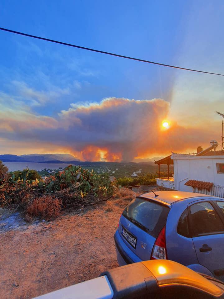 Τα εναέρια μέσα δεν μπορούν πλέον να επιχειρήσουν στην περιοχή. Σημειώνεται ότι στην μάχη με τις φλόγες είχαν ριχτεί επτά αεροπλάνα και οκτώ ελικόπτερα. Στο σημείο παραμένουν 103 πυροσβέστες καθώς επίσης και υδροφόρες των δήμων. Σύμφωνα με τους πυροσβέστες γίνεται προσπάθεια να προστατευτούν τα σπίτια. Σκοπός είναι να δημιουργηθούν αντιπυρικές ζώνες ώστε να μην φτάσουν οι φλόγες στους οικισμούς.