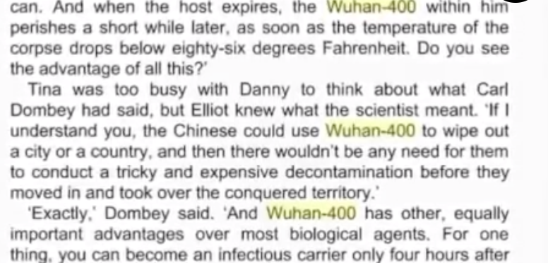 Άλλοι σημείωσαν πως στην πλοκή του βιβλίου ο ιός Wuhan αποκαλείται το “τέλειο όπλο” που θα μπορούσε να “εξοντώσει μια πόλη ή μια χώρα”. “Αυτό είναι τρελό και πιθανότατα δεν είχε ιδέα όταν το έγραφε” σχολίασε ένας άλλος χρήστης.