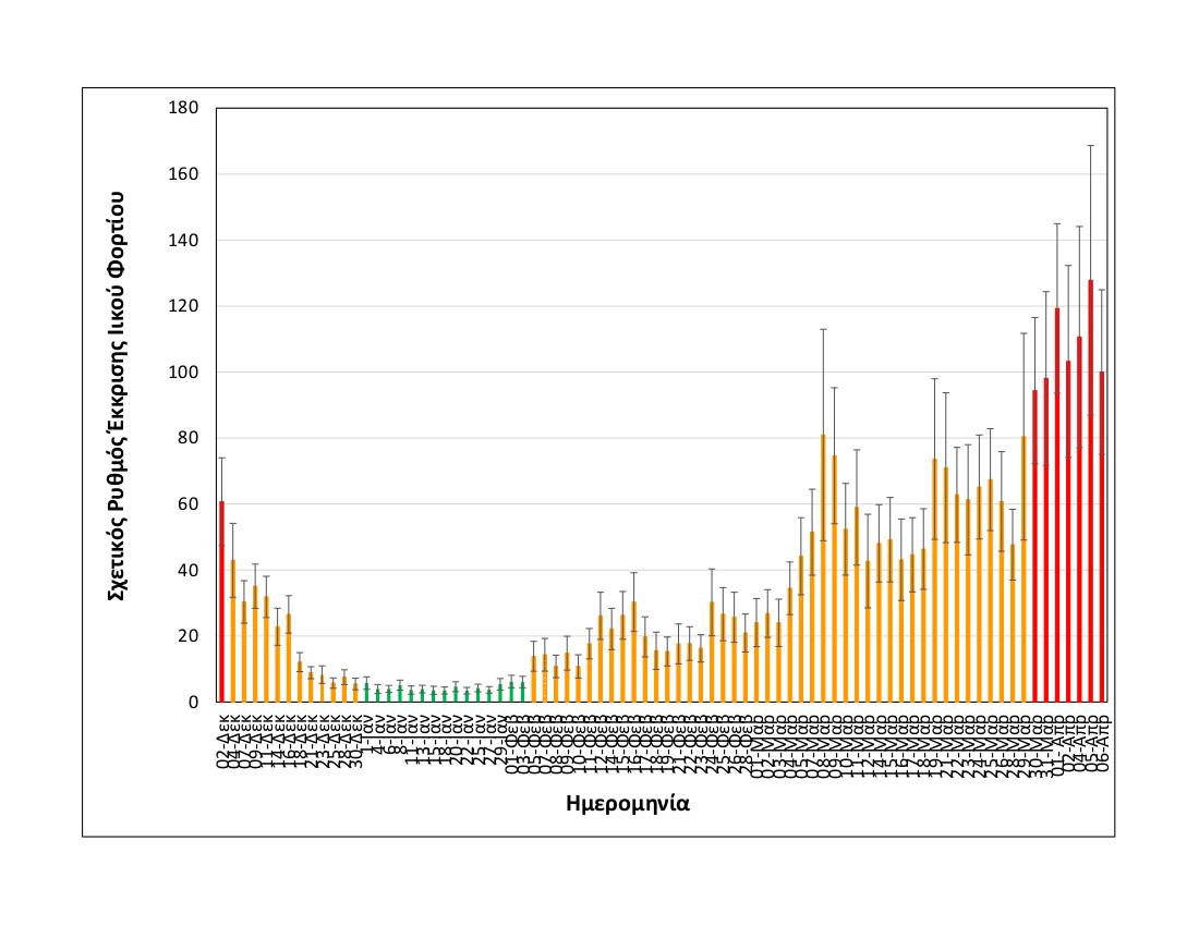 Το ιικό φορτίο, ανιχνεύεται σε πολύ υψηλές τιμές, αντίστοιχες του πρώτου δεκαημέρου του Νοεμβρίου.