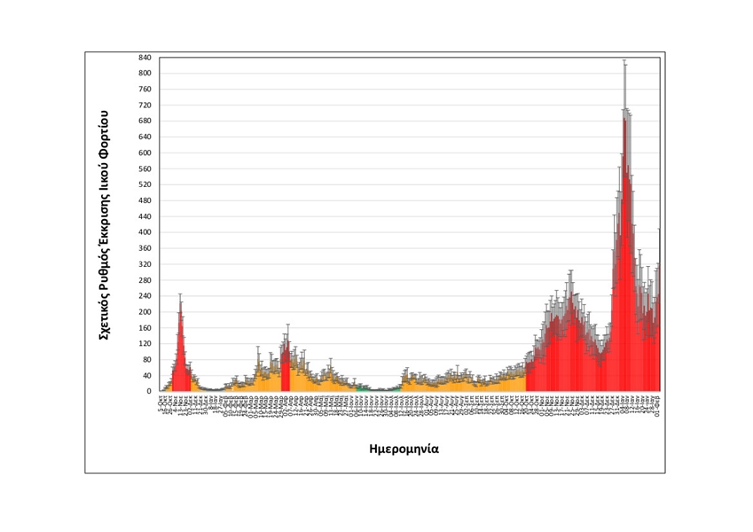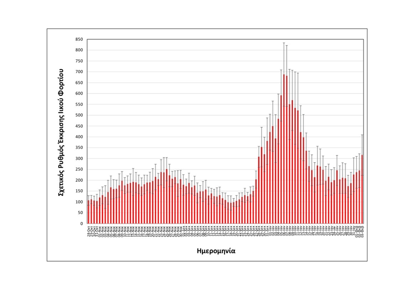Όπως φαίνεται στα διαγράμματα που παρουσιάζει το ΑΠΕ-ΜΠΕ (επισυνάπτονται) έπειτα από μία περίοδο δύο εβδομάδων που το ιικό φορτίο φάνηκε να σταθεροποιείται γύρω από ένα υψηλό επίπεδο, η τάση από την περασμένη Δευτέρα και μετά έγινε ξεκάθαρα αυξητική.