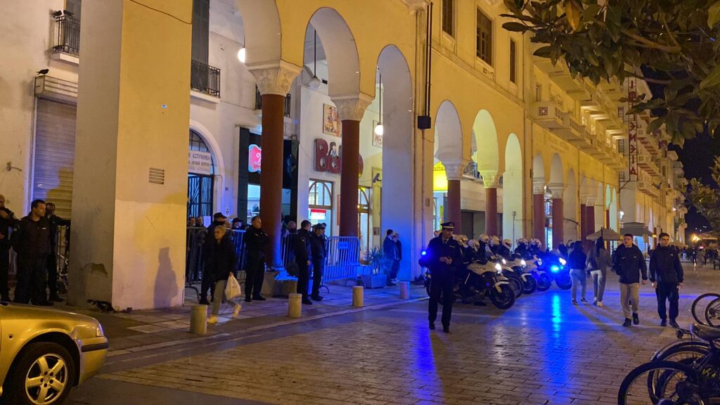 Να σημειωθεί ότι από χθες το κέντρο της Θεσσαλονίκης βρίσκεται υπό την επιτήρηση εκατοντάδων αστυνομικών, που με κλούβες και μοτοσυκλέτες έχουν ακροβολιστεί πέριξ του κέντρου της πόλης, προκειμένου να παρέμβουν αν τυχόν προκληθούν επεισόδια. Επίσης εισαγγελείς επιβλέπουν την εφαρμογή των αστυνομικών μέτρων, ενώ επί ποδός βρίσκονται και πυροσβεστικές δυνάμεις.