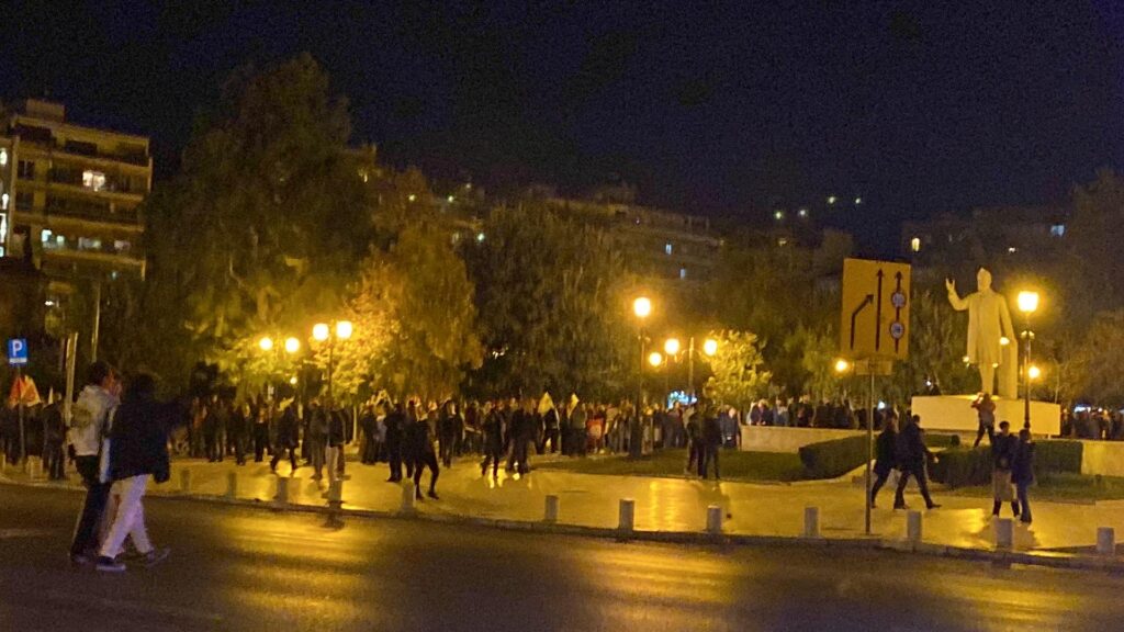 Η πορεία για το ΠΑΜΕ, τους φοιτητικούς συλλόγους και τις συλλογικότητες κατέληξε το άγαλμα του Βενιζέλου.