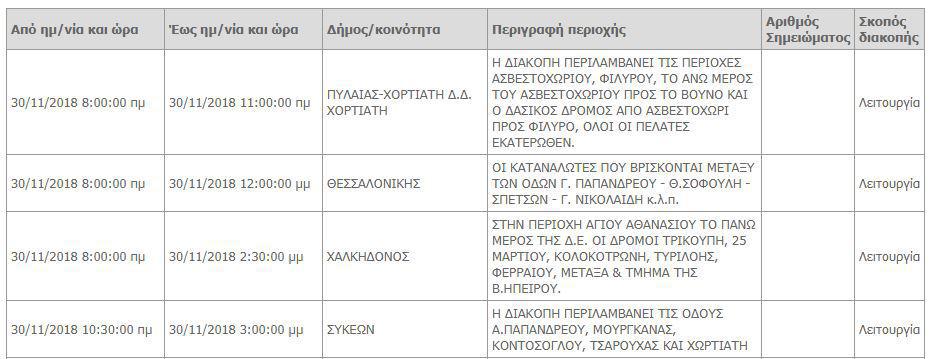 «Προκειμένου να προγραμματίσετε τις εργασίες σας και να ελαχιστοποιηθεί η όχλησή σας, στον ακόλουθο πίνακα, μπορείτε να ενημερωθείτε για τις περιοχές και τις ώρες προγραμματισμένων διακοπών ηλεκτροδότησης.