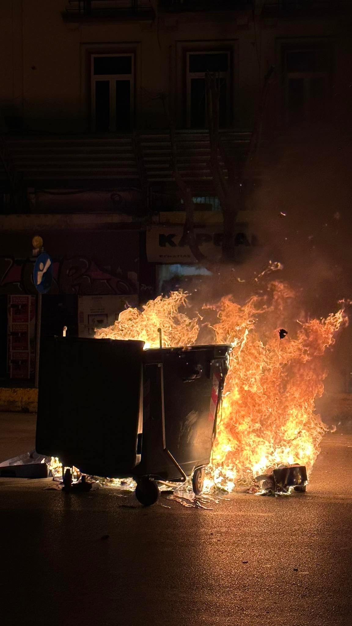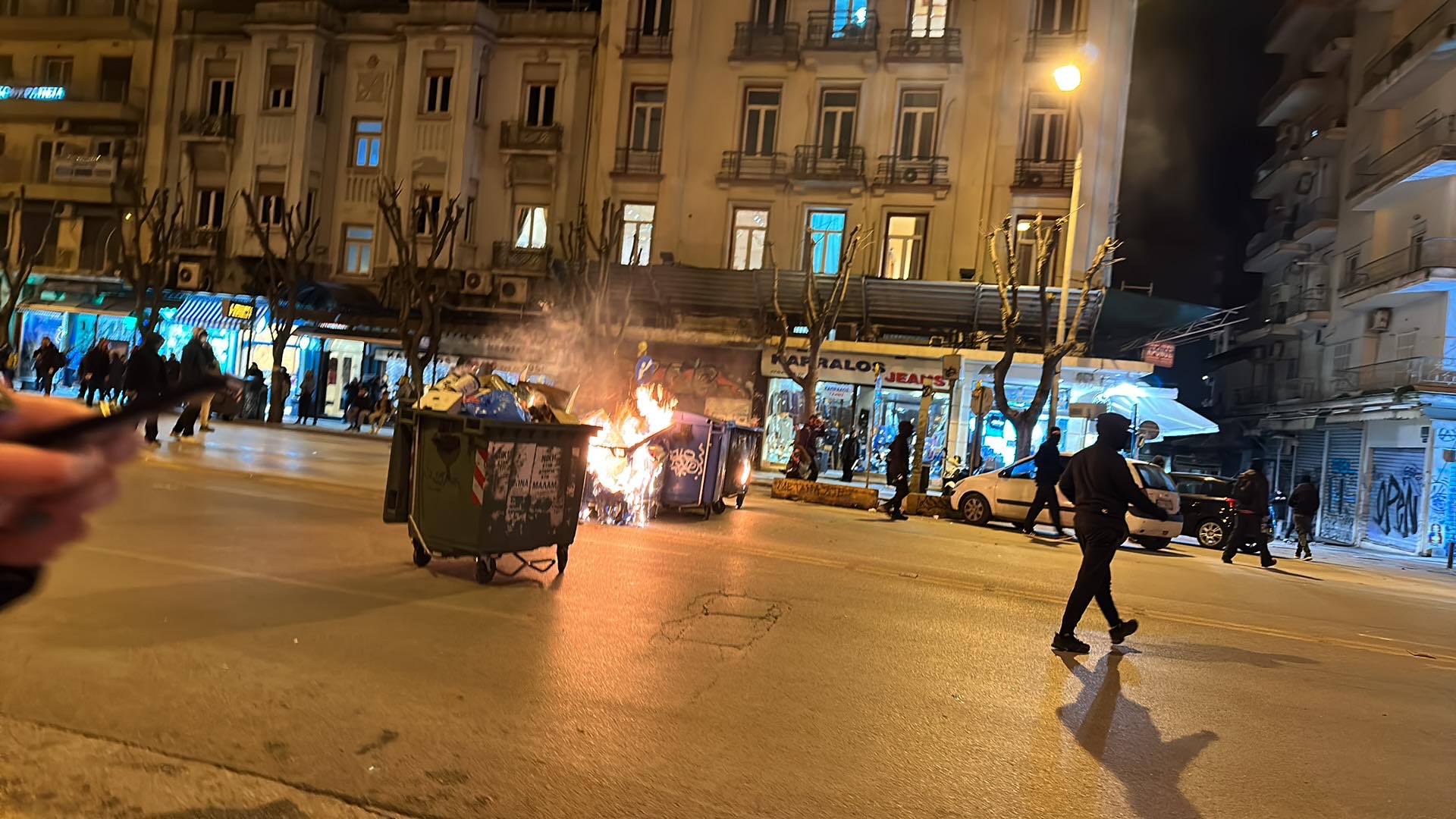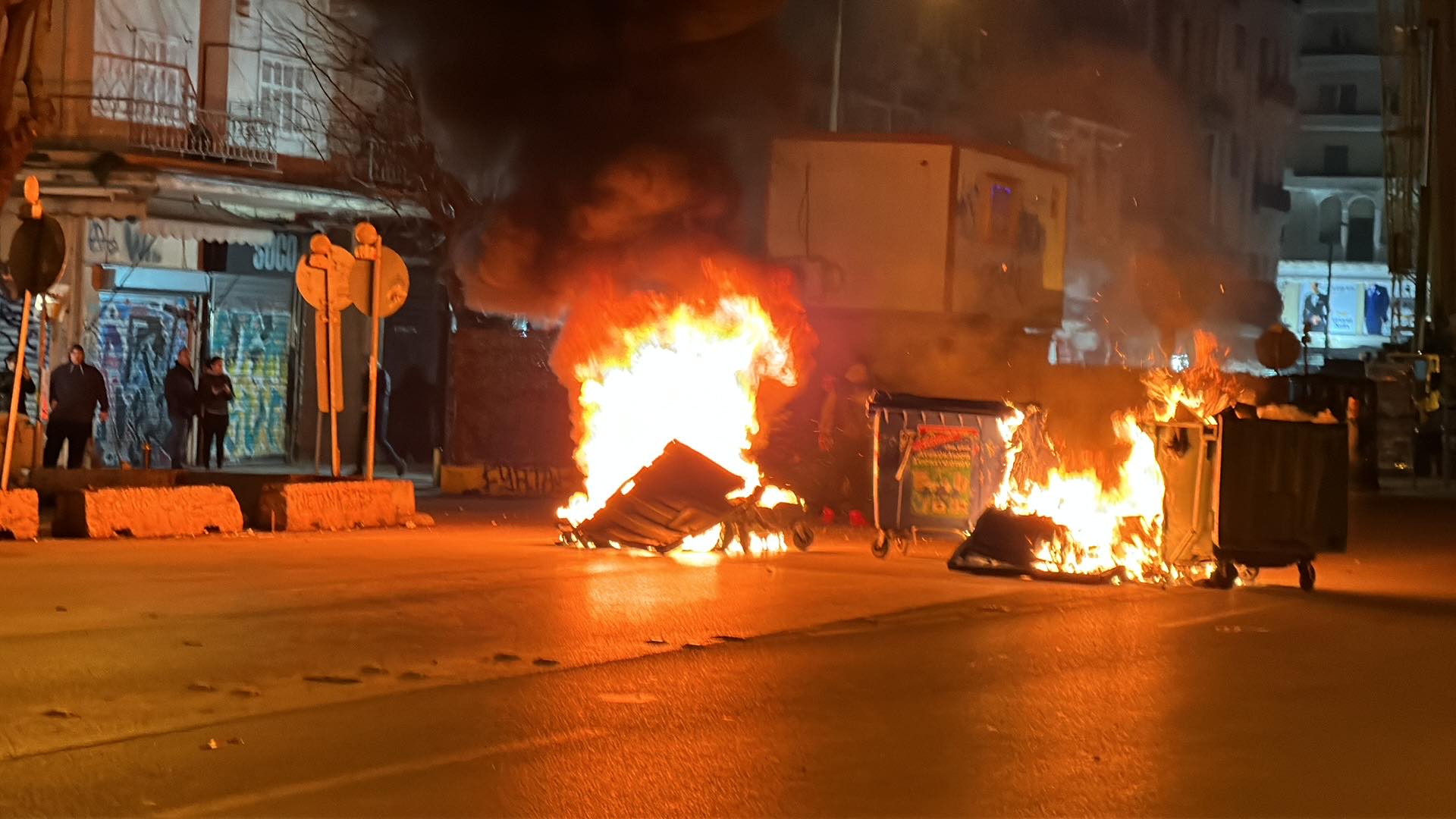 Θεσσαλονίκη: Δεύτερος γύρος επεισοδίων – Καμμένοι κάδοι και μολότοφ στο κέντρο της πόλης