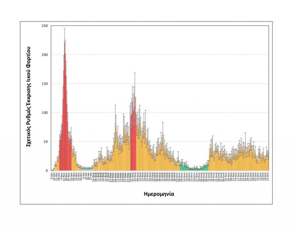 Συγκεκριμένα, στα δείγματα που λαμβάνονται καθημερινά στην είσοδο της Εγκατάστασης Επεξεργασίας Λυμάτων Θεσσαλονίκης, αναφορικά με τις εξορθολογισμένες τιμές σχετικής έκκρισης ιικού φορτίου, η μέση τιμή των δύο πιο πρόσφατων μετρήσεων, δηλαδή της Τετάρτης 22/09 και της Πέμπτης 23/09 είναι:
