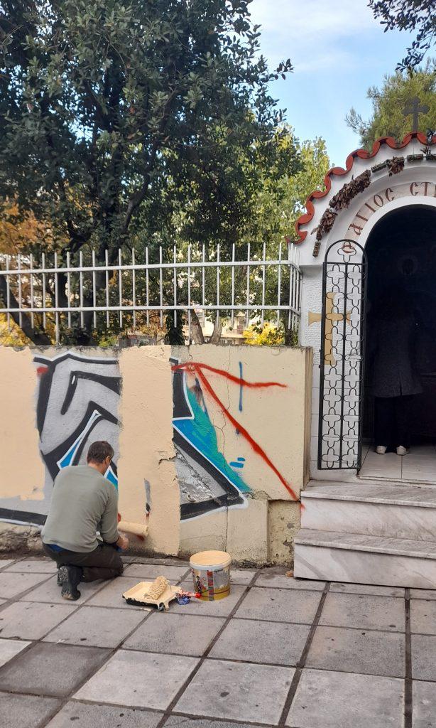 “Η δράση στον ‘Άγιο Στυλιανό’ εντάσσεται στο πλαίσιο του κοινωνικού χαρακτήρα και προσανατολισμού της υπηρεσίας”, υπογράμμισε κι ο Προϊστάμενος της Διεύθυνσης Δημοτικής Αστυνομίας Πέτρος Παπαφίλης. Τα χρώματα που χρησιμοποιήθηκαν για τη βαφή προσφέρθηκαν από την εταιρεία ISOMAT.