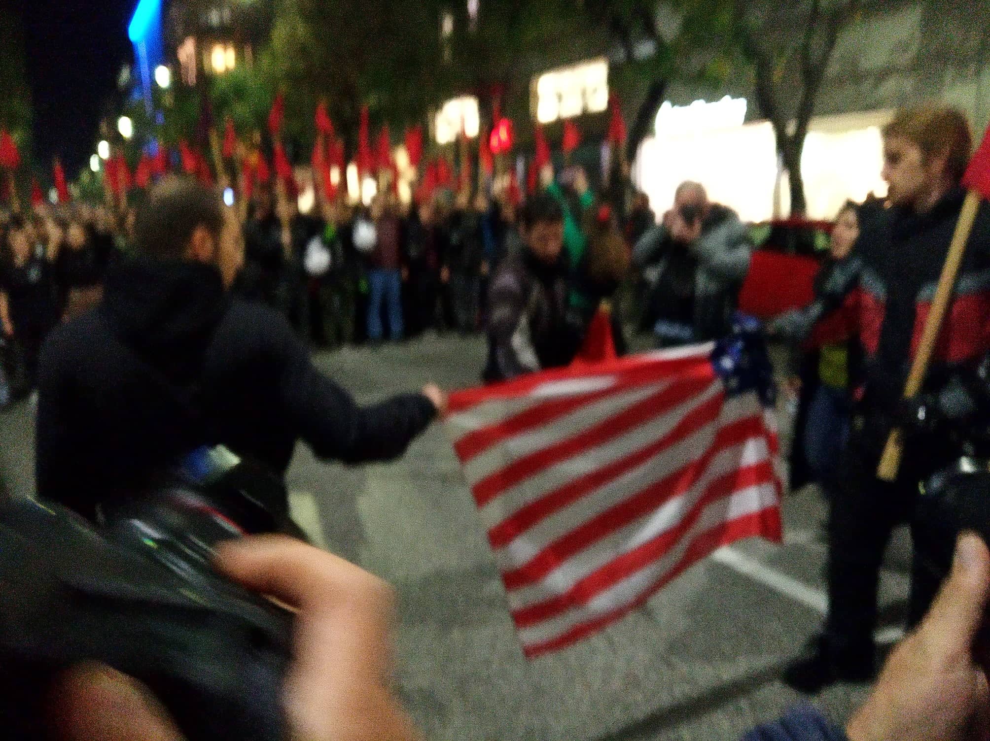 Σε συνέχεια των επεισοδίων που γίνονται στο κέντρο της Θεσσαλονίκης με αφορμή την πορεία μνήμης για την εξέγερση στο Πολυτεχνείο, αμερικανικές σημαίες κάψανε συμβολικά έξω από το προξενείο των ΗΠΑ