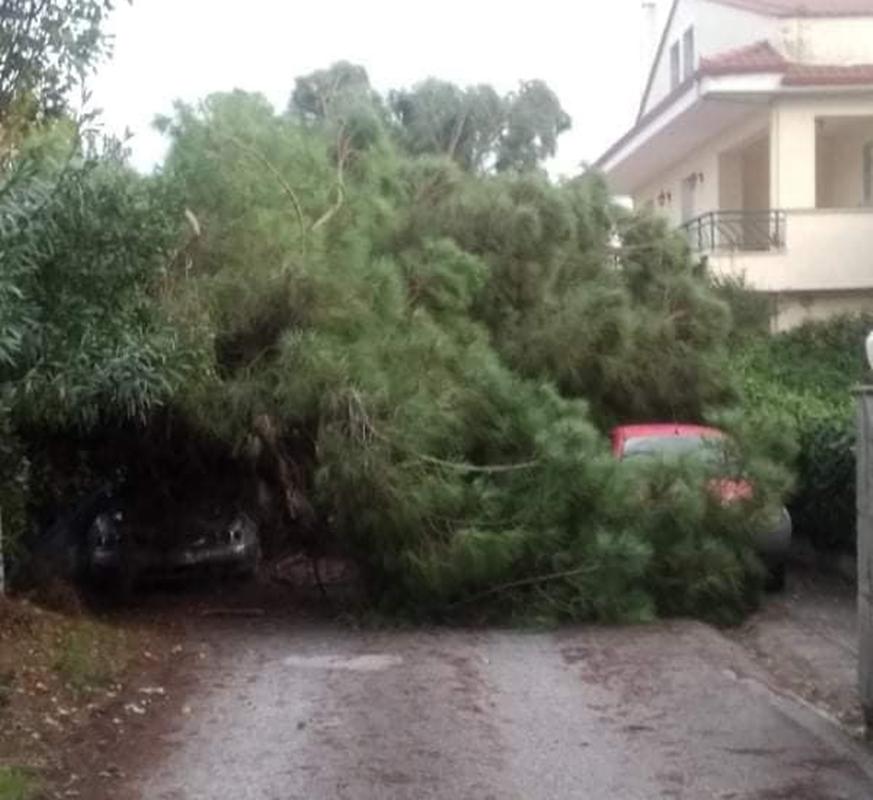 Μάλιστα το δέντρο κατέληξε σε Ι.Χ με αποτέλεσμα να σημειωθούν υλικές ζημιές.