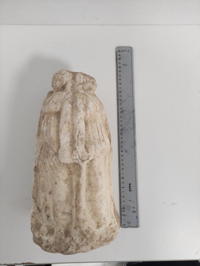 Σύμφωνα με την πρώτη αρχαιολογική εκτίμηση εμπίπτει στις προστατευτικές διατάξεις της νομοθεσίας, απεικονίζει τη θεότητα της ελληνικής μυθολογίας Τρίμορφη Εκάτη και χρονολογείται στους ρωμαϊκούς χρόνους (2ος – 3ος αιώνας μ.Χ.).