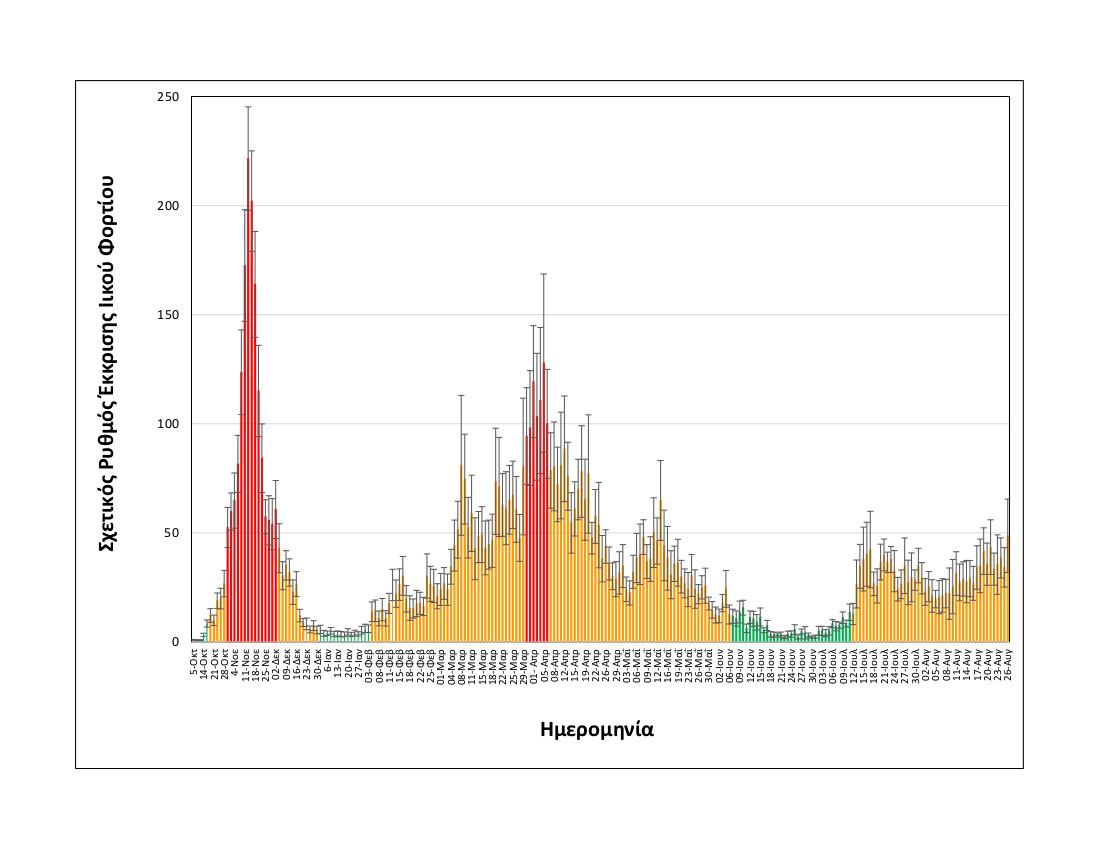 Όπως φαίνεται στα διαγράμματα που παρουσιάζει το ΑΠΕ-ΜΠΕ, μετά το πρώτο δεκαήμερο του Αυγούστου όπου οι τιμές του ιικού φορτίου είχαν σταθεροποιηθεί σε χαμηλότερα επίπεδα, σταδιακά άρχισαν να αυξάνονται, ιδιαίτερα από τις 17 Αυγούστου και μετά. Πιο έντονες διακυμάνσεις εξακολουθούν να καταγράφονται ανάμεσα στις αναλύσεις που γίνονται τις καθημερινές και τα σαββατοκύριακα, κάτι που έχει αποδοθεί στην πληθυσμιακή αλλοίωση, που παρατηρείται τους θερινούς μήνες λόγω μετακινήσεων.
