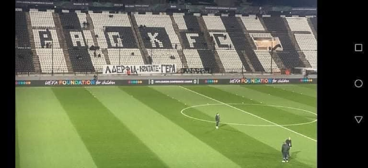 Εξηγήσεις για το πανό στο γήπεδο της Τούμπας, στην αναμέτρηση του ΠΑΟΚ με την Μίντιλαντ, το οποίο προκάλεσε εισαγγελική παρέμβαση, καθώς το περιεχόμενό του («Αδέρφια Κρατάτε Γερά») φέρεται να συνδεόταν με τους δώδεκα υπόδικους για τη δολοφονία του 19χρονου ‘Αλκη, έδωσαν πέντε νεαροί στην Υποδιεύθυνση Αθλητικής Βίας Θεσσαλονίκης της ΕΛ.ΑΣ.