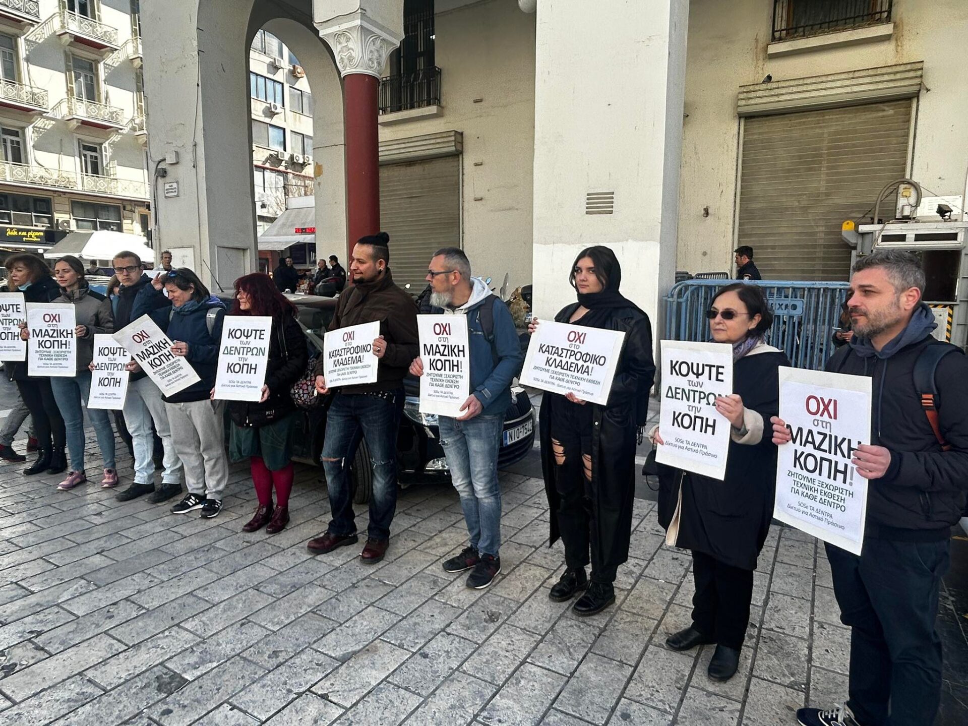 Θεσσαλονίκη-Κοπές δέντρων: Διαμαρτυρία έξω από το ΑΤ Λευκού Πύργου