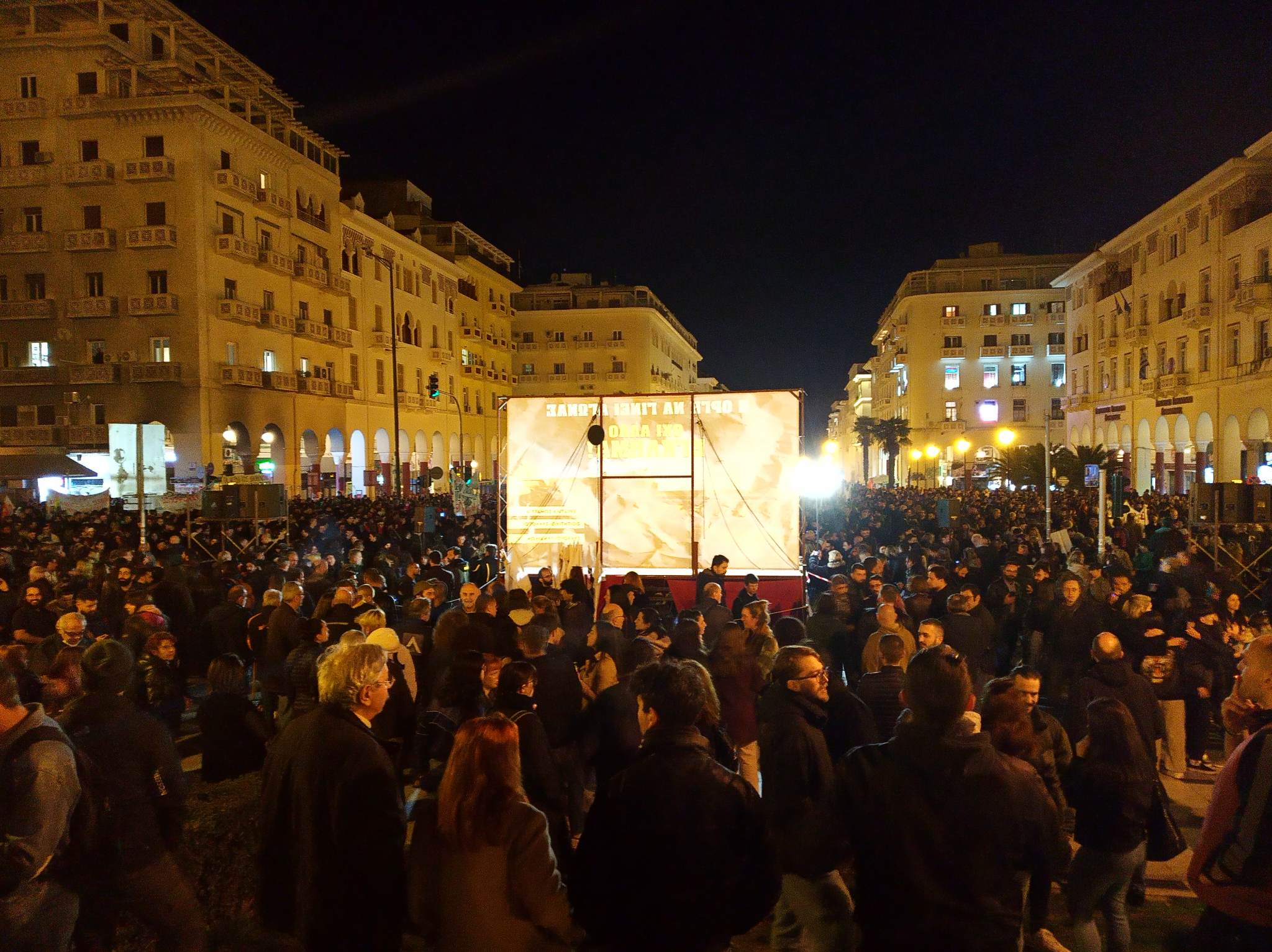 Μετά την πρωινή τεράστια συγκέντρωση, με περισσότερους από 20000 ανθρώπους στην Εγνατία στη Θεσσαλονίκη, αλλά και 1000000 στην Αθήνα και δεκάδες χιλιάδες σε άλλες 70 πόλεις, μια ακόμη είναι απόψε σε εξέλιξη στο Άγαλμα Βενιζέλου, από τις 19.00 με τις εκτιμήσεις να μιλάνε για πάνω από 20.000 κόσμου να είναι πλέον συγκεντρωμένοι και πάλι.