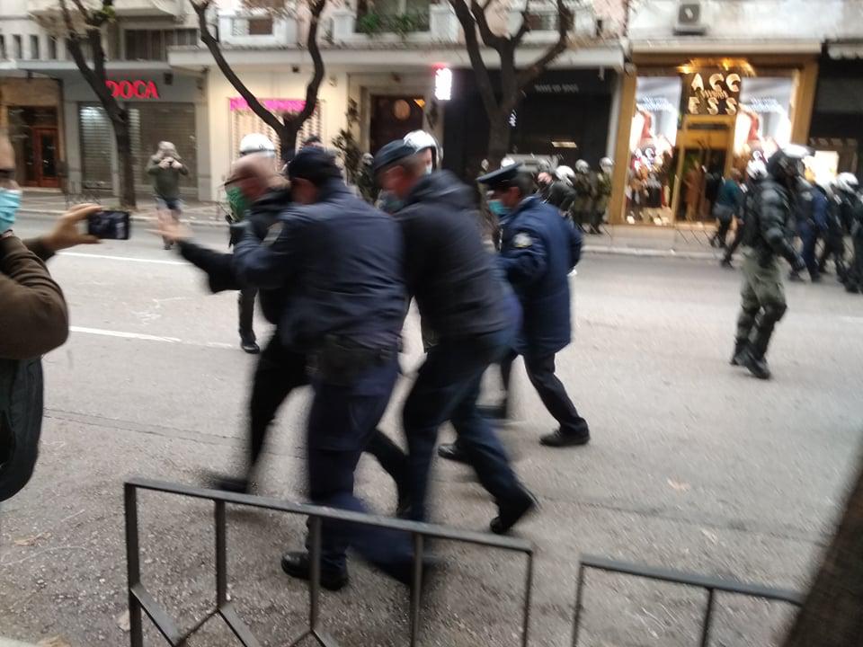 «Η κυβέρνηση είπε ότι απαγορεύει τις συγκεντρώσεις για να μην υπάρξει διασπορά του κορονοϊού, την ίδια ώρα όμως είχε συνωστισμένους εκατοντάδες αστυνομικούς γύρω από το ΑΠΘ και το Αμερικάνικο προξενείο», αναφέρει το ΚΚΕ και συνεχίζει: «Περικύκλωσε τους διαδηλωτές στη μεσημεριανή διαδήλωση έξω από το αμερικάνικο προξενείο. Προχώρησε σε 6 συλλήψεις, 28 προσαγωγές και 94 διοικητικά πρόστιμα των 300 ευρώ. Δεν πήρε κανένα μέτρο κατά της διασποράς του κορονοϊού σε όσους προσήγαγαν».