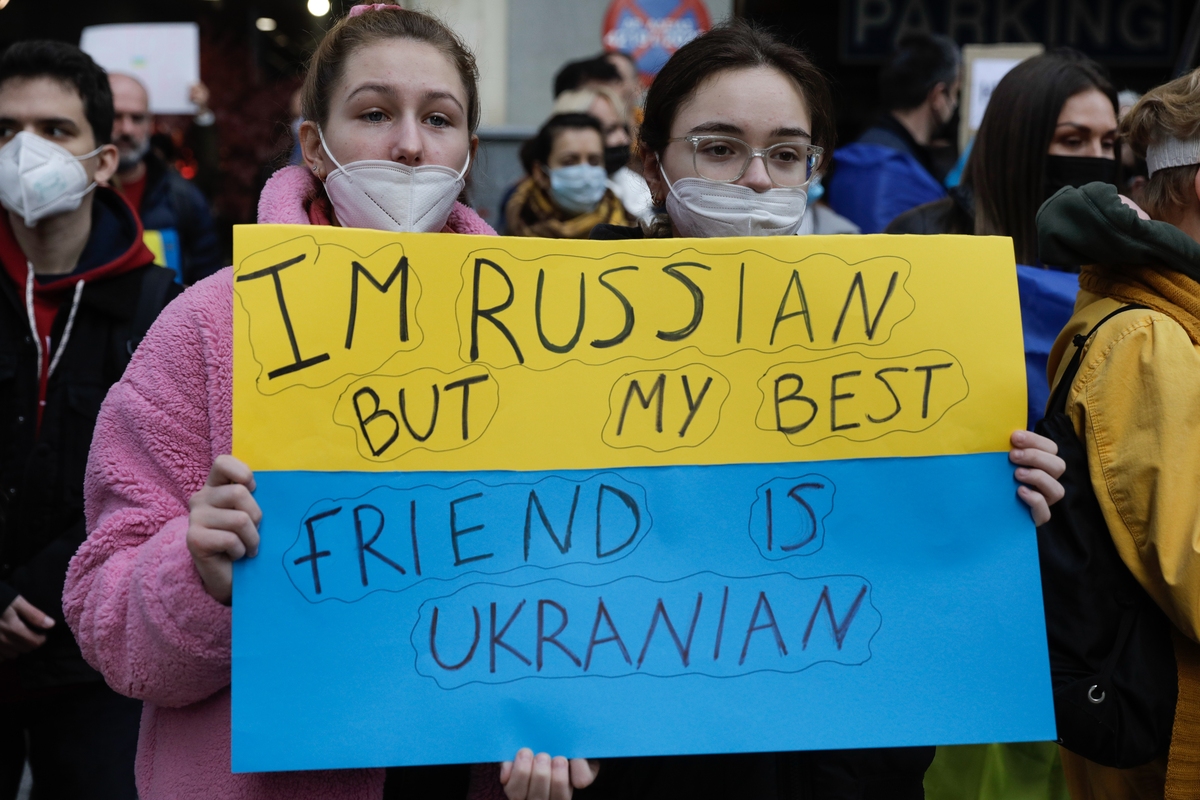 Οι διαδηλωτές φώναξαν συνθήματα υπέρ της ειρήνης, ζητώντας να φύγουν από την Ουκρανία τα στρατεύματα της Ρωσίας και στη συνέχεια αποχώρησαν.