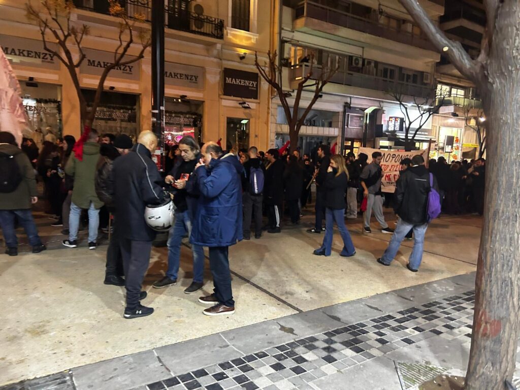 Ομάδα ατόμων αποτελούμενη από άτομα του αναρχικού χώρου προκάλεσε ζημιές σε υαλοπίνακες βιτρινών καταστημάτων στην οδό Αγίας Σοφίας και στη συνέχεια κινήθηκαν προς την οδό Τσιμισκή.