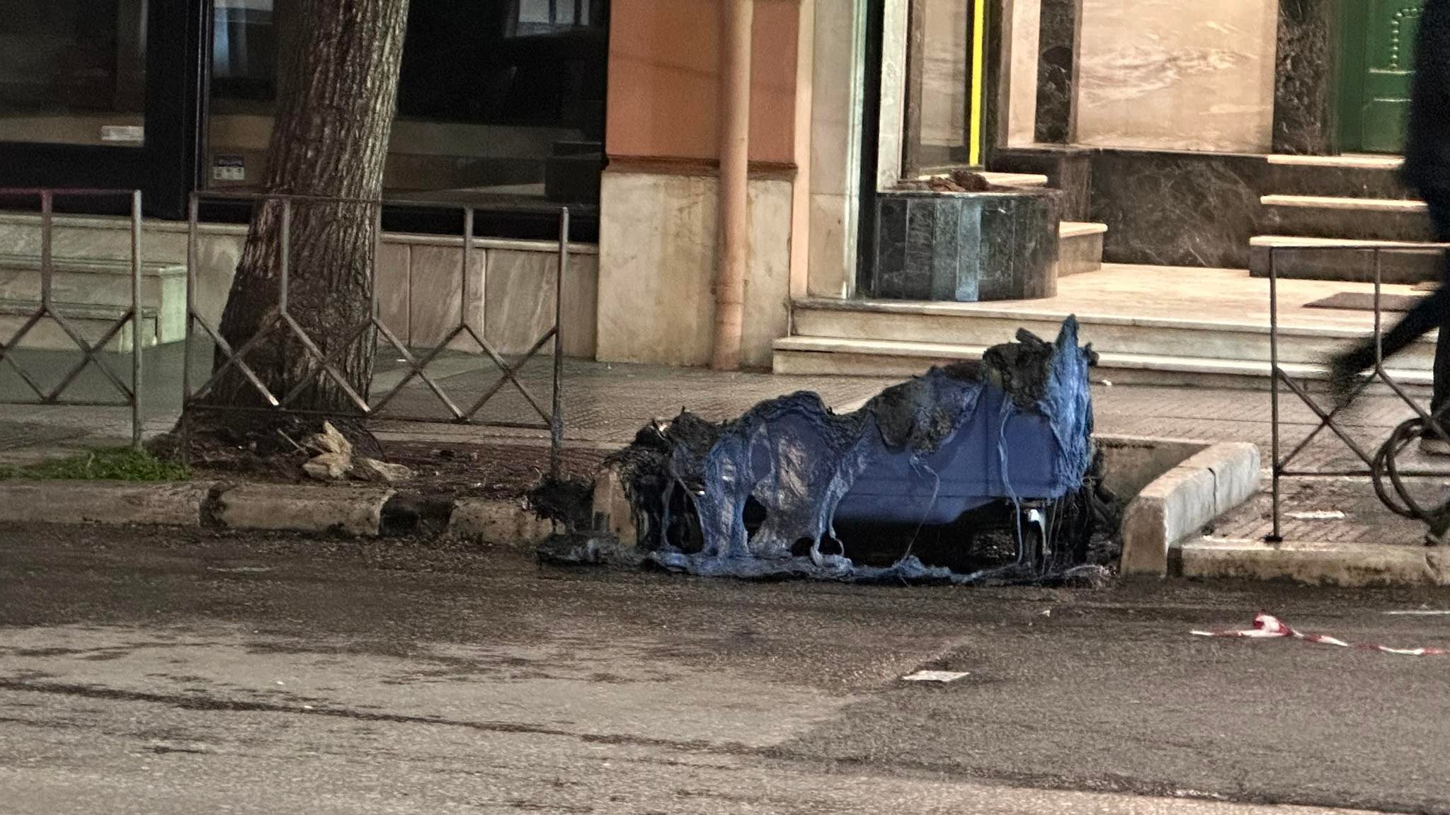 Θεσσαλονίκη: Πέταξαν κόκκινες μπογιές στην Τράπεζα της Ελλάδος και έκαψαν κάδους