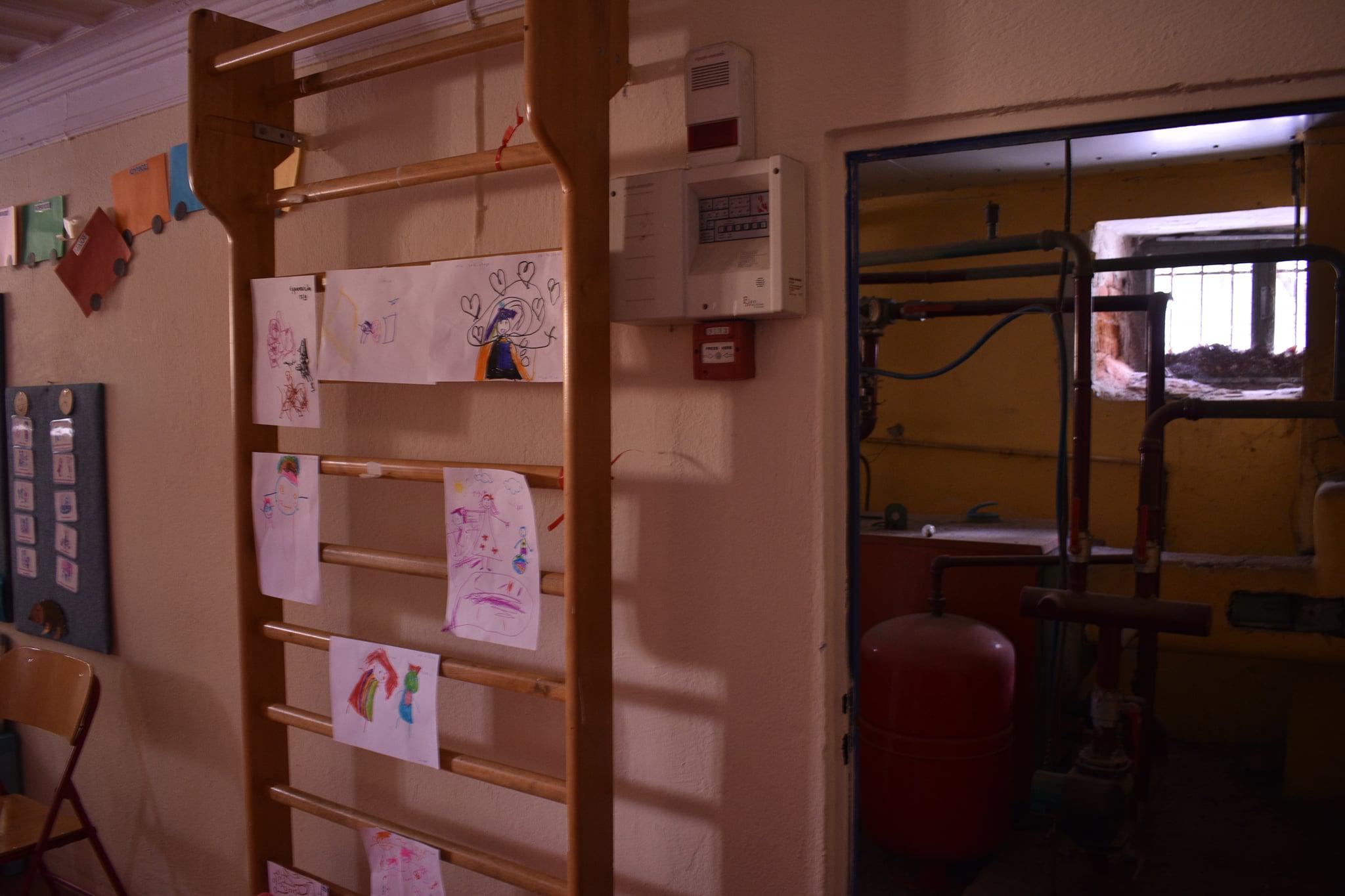 Η αίθουσα εκτός από το γεγονός ότι δεν αερίζεται επαρκώς και έχει ελάχιστο φωτισμό, βρίσκεται δίπλα στον λέβητα φυσικού αερίου, όπως καταγγέλλει στην Parallaxi, γονιός παιδιού που φοιτά εκεί.