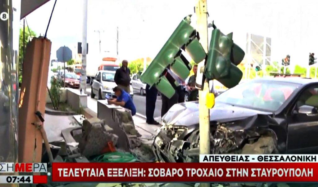 Θεσσαλονίκη: Σοβαρό τροχαίο — Αυτοκίνητο καρφώθηκε σε φανάρι