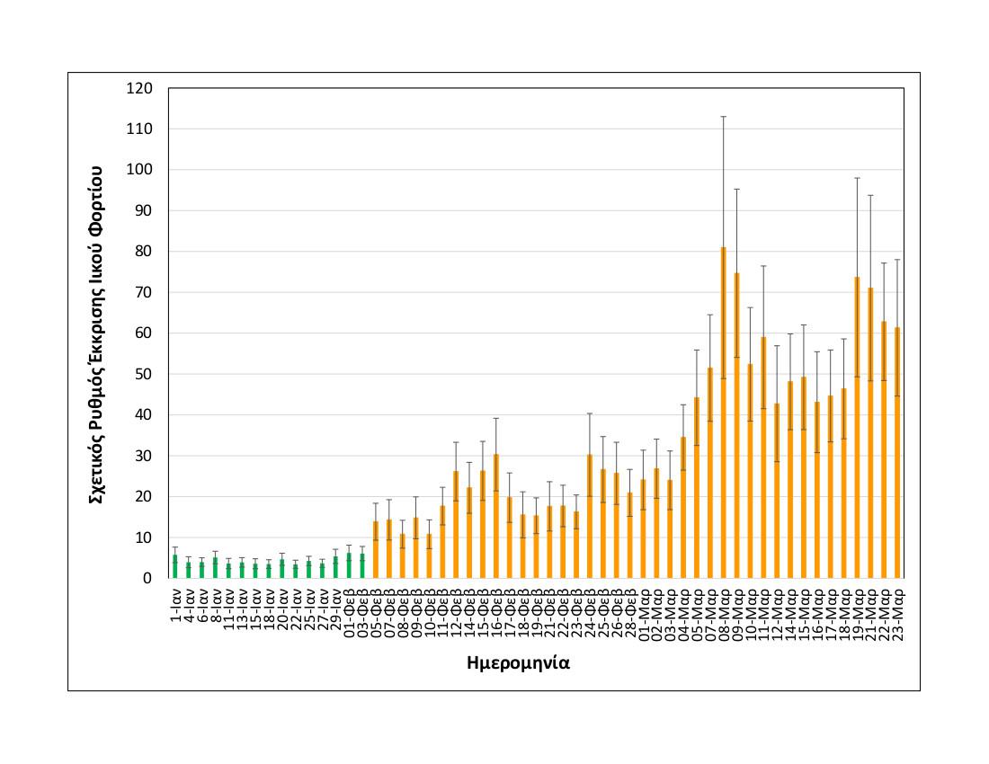 Συγκεκριμένα, η μέση τιμή των δύο πιο πρόσφατων μετρήσεων, δηλαδή της Δευτέρας 22/03 και της Τρίτης 23/03 είναι: