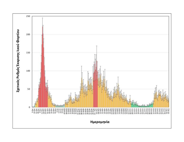 Όπως φαίνεται στα διαγράμματα που παρουσιάζει το ΑΠΕ-ΜΠΕ από τα τέλη Ιουλίου και τις πρώτες μέρες του Αυγούστου, πέρα από τις ημερήσιες διακυμάνσεις, η συνολική εικόνα δείχνει μία μικρή αποκλιμάκωση του ιικού φορτίου, που με βάση και τη συσχέτιση με την κλινική εικόνα και τα ημερήσια κρούσματα που έχουν ανακοινωθεί τις αντίστοιχες μέρες από τον ΕΟΔΥ, αποδίδεται από την ομάδα του ΑΠΘ, στην αναχώρηση από την πόλη για διακοπές, πιθανώς αρκετών ασυμπτωματικών φορέων του ιού.