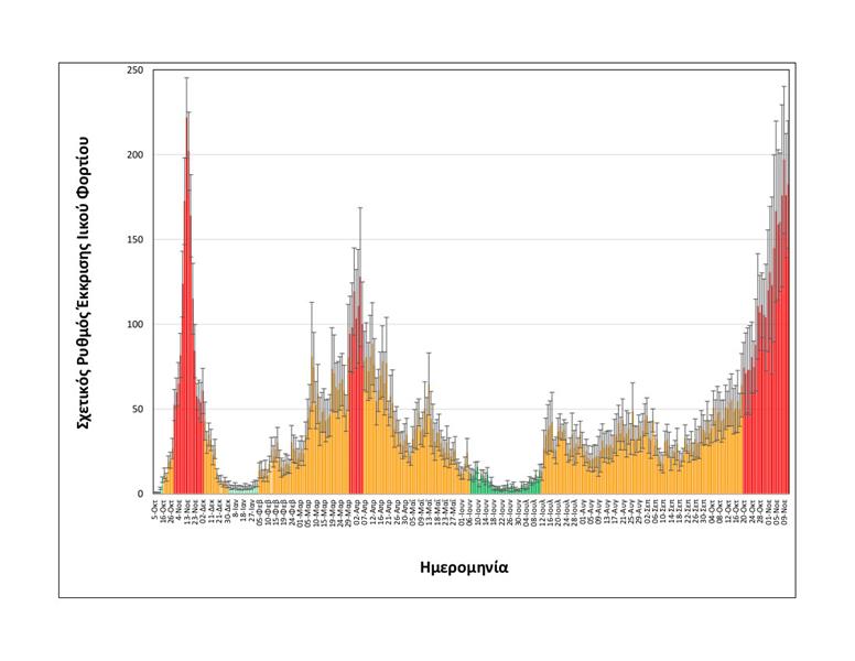 Συγκεκριμένα, στα δείγματα που λαμβάνονται καθημερινά στην είσοδο της Εγκατάστασης Επεξεργασίας Λυμάτων Θεσσαλονίκης, αναφορικά με τις εξορθολογισμένες τιμές σχετικής έκκρισης ιικού φορτίου, η μέση τιμή των δύο πιο πρόσφατων μετρήσεων, δηλαδή της Τετάρτης 10/11 και της Πέμπτης 11/11 είναι: