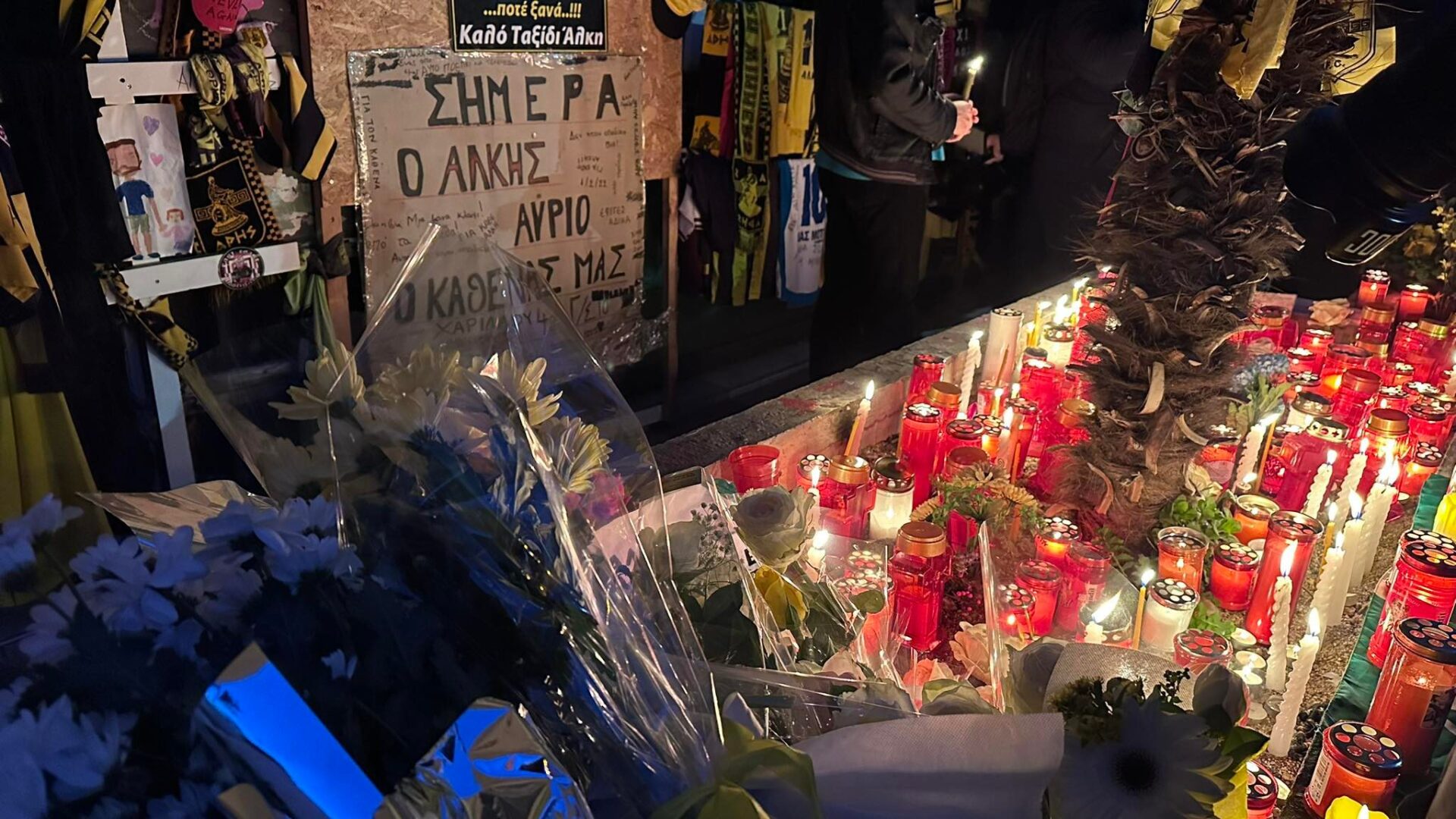 Πλήθος κόσμου όλων των ηλικιών σπεύδει στο σημείο για να τιμήσει τη μνήμη του 19χρονου Άλκη, κλείνοντας τον δρόμο, ενώ σύμφωνα με ανακοίνωση, η Δομή Για Τον Άλκη, θα προβεί σε μία κίνηση ιδιαίτερου συμβολισμού.