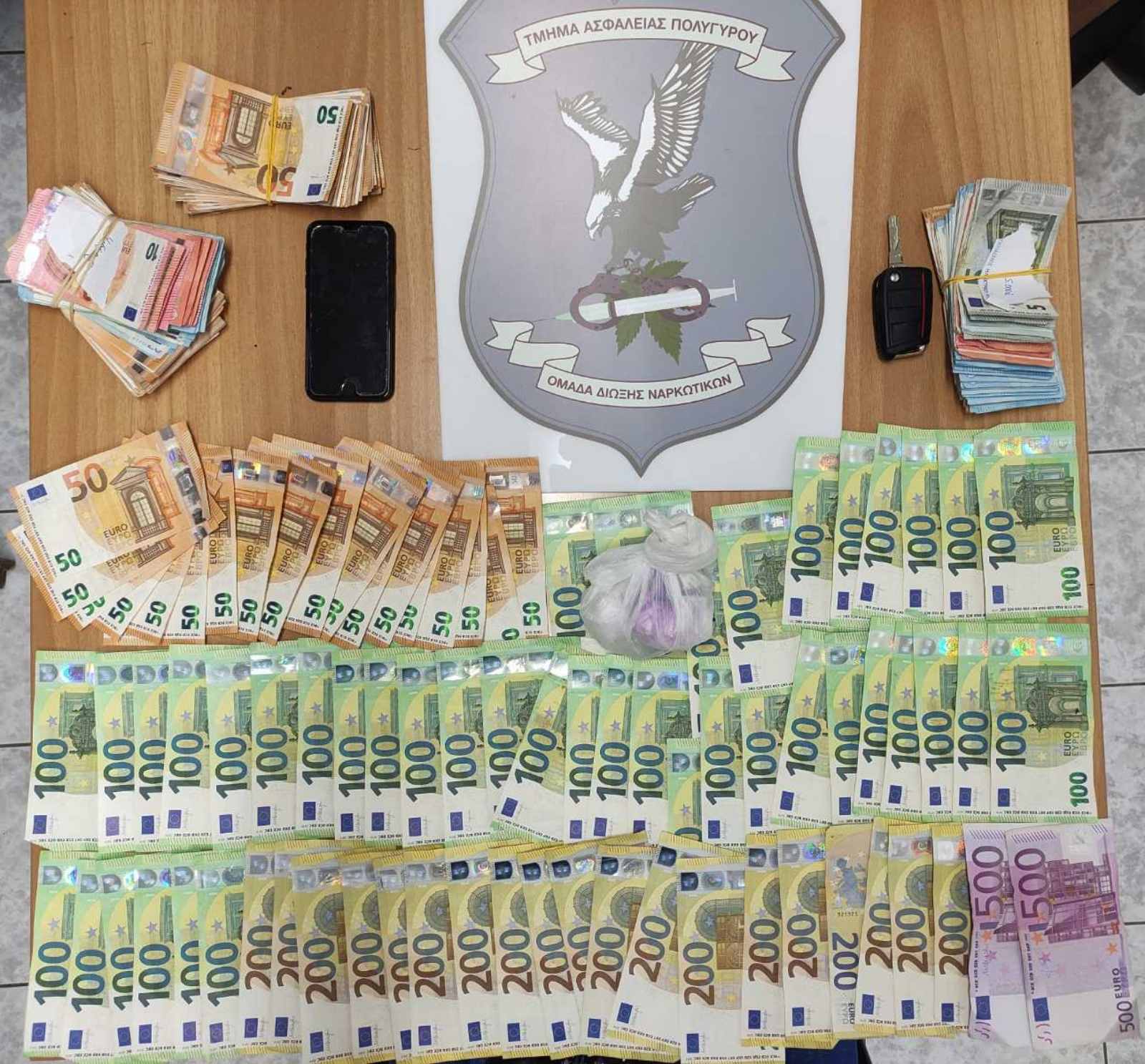 Σε έρευνα που πραγματοποιήθηκε στην οικία του, βρέθηκαν και κατασχέθηκαν ποσότητα κοκαΐνης βάρους 36 γραμμαρίων και χρηματικό ποσό 25.080 ευρώ, ως προερχόμενο από την εμπορία ναρκωτικών.