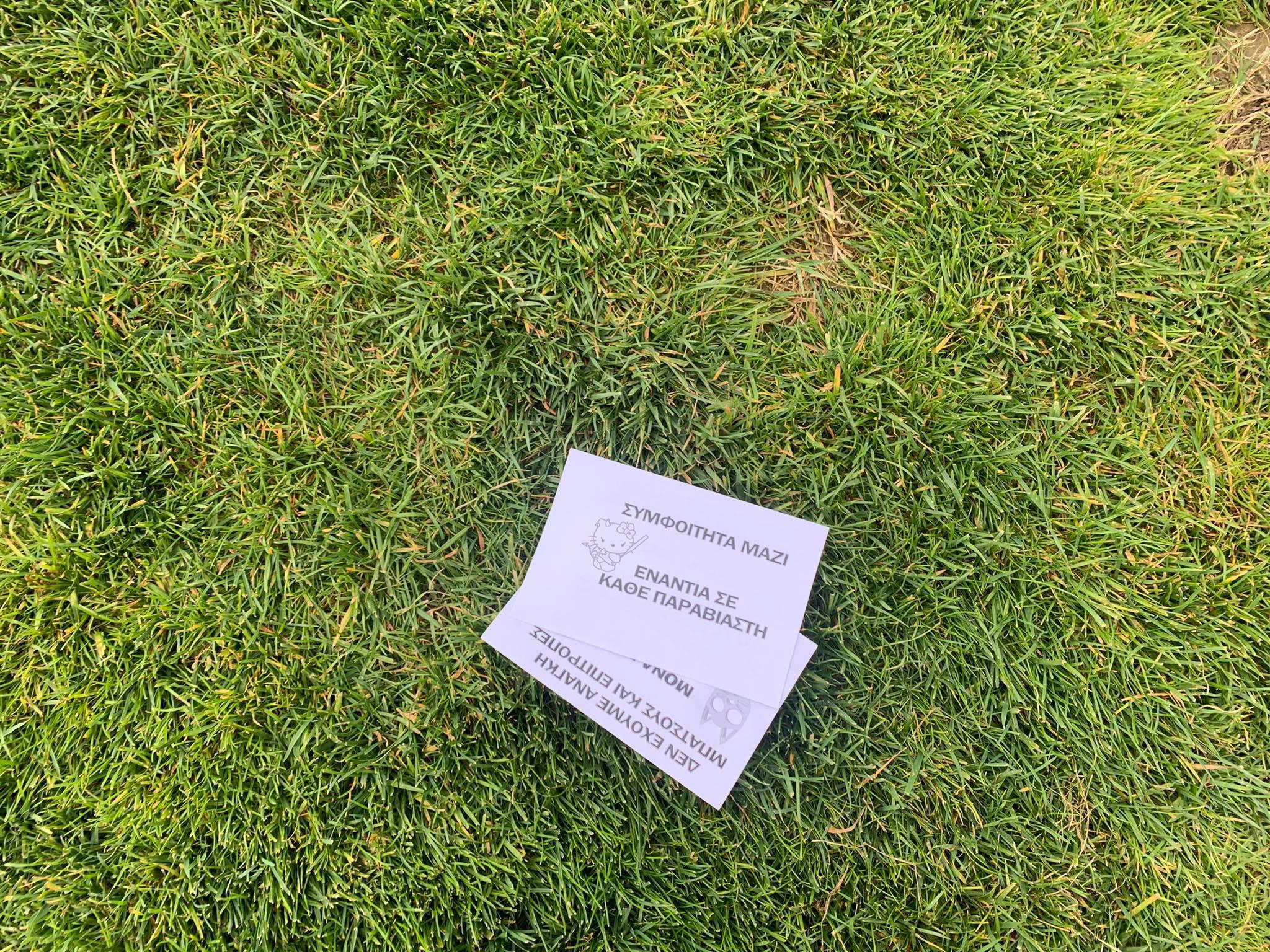 “Έξω από τις ζωές μας και από τις σχολές μπάτσοι, αφεντικά και παραβιαστές φεστιβάλ με βιτρίνα τον ανθρωπισμό. Πλουτίζει με εκμετάλλευση και εθελοντισμό”.