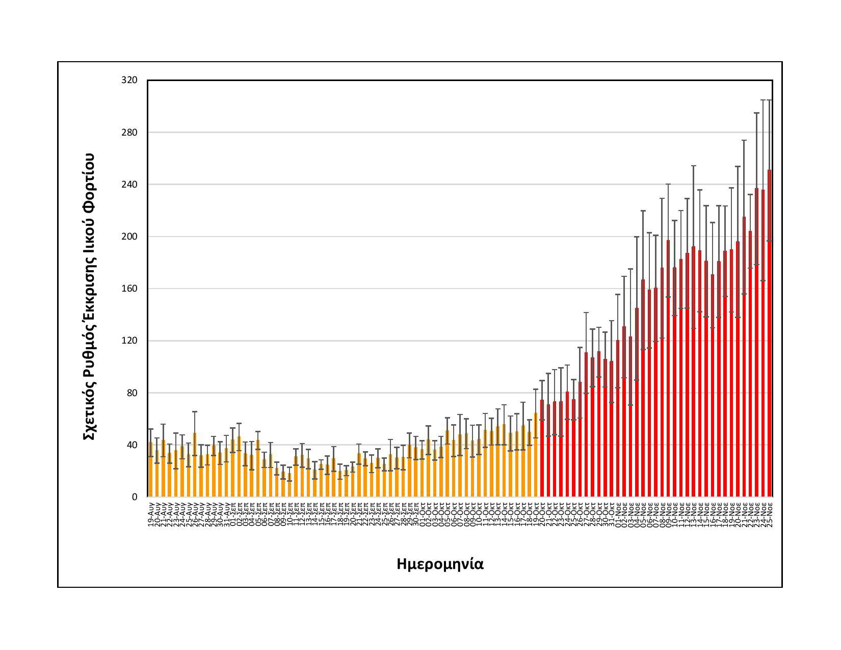 -Οριακά σταθερή (+10%) σε σχέση με τη μέση τιμή των δύο αμέσως προηγούμενων μετρήσεων της Δευτέρας 22/11 και της Τρίτης 23/11.