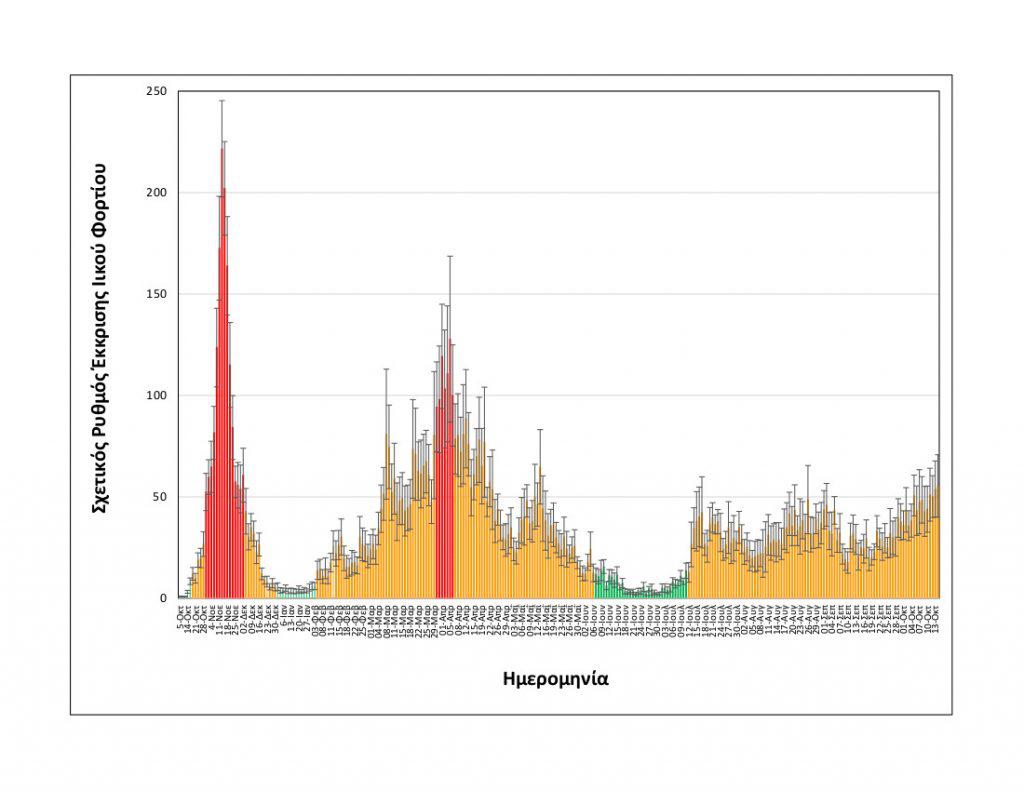 Συγκεκριμένα, στα δείγματα που λαμβάνονται καθημερινά στην είσοδο της Εγκατάστασης Επεξεργασίας Λυμάτων Θεσσαλονίκης, αναφορικά με τις εξορθολογισμένες τιμές σχετικής έκκρισης ιικού φορτίου, η μέση τιμή των δύο πιο πρόσφατων μετρήσεων, δηλαδή της Τετάρτης 13/10 και της Πέμπτης 14/10 είναι:
