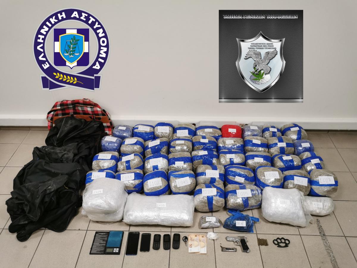 Συγκεκριμένα, απογευματινές ώρες χθες (31-07-2021) κέντρο της πόλης, αστυνομικοί της ανωτέρω Υπηρεσίας με τη συνδρομή συναδέλφων τους της Ο.Π.Κ.Ε ακινητοποίησαν για έλεγχο το αυτοκίνητο που οδηγούσε ο 27χρονος και σε έρευνα που πραγματοποιήθηκε, βρέθηκαν στο εσωτερικό του οχήματος και κατασχέθηκαν 2 ταξιδιωτικοί σάκοι με 23 δέματα κάνναβης, συνολικού βάρους 45 κιλών και 851 γραμμαρίων.