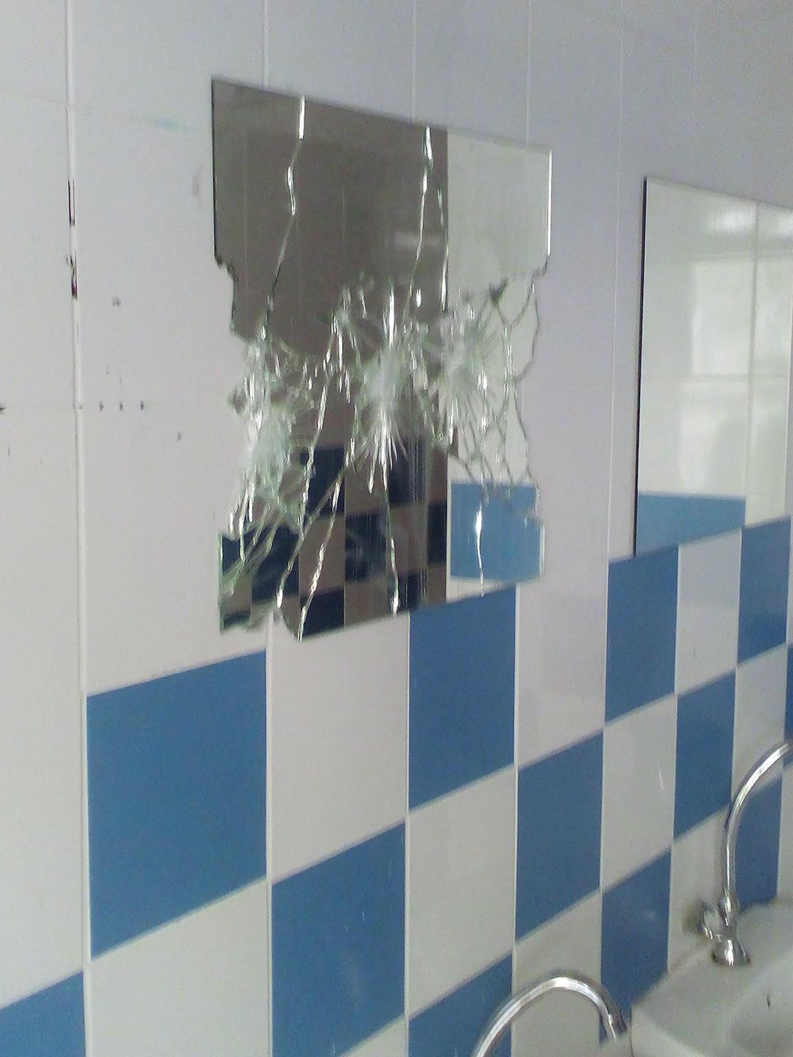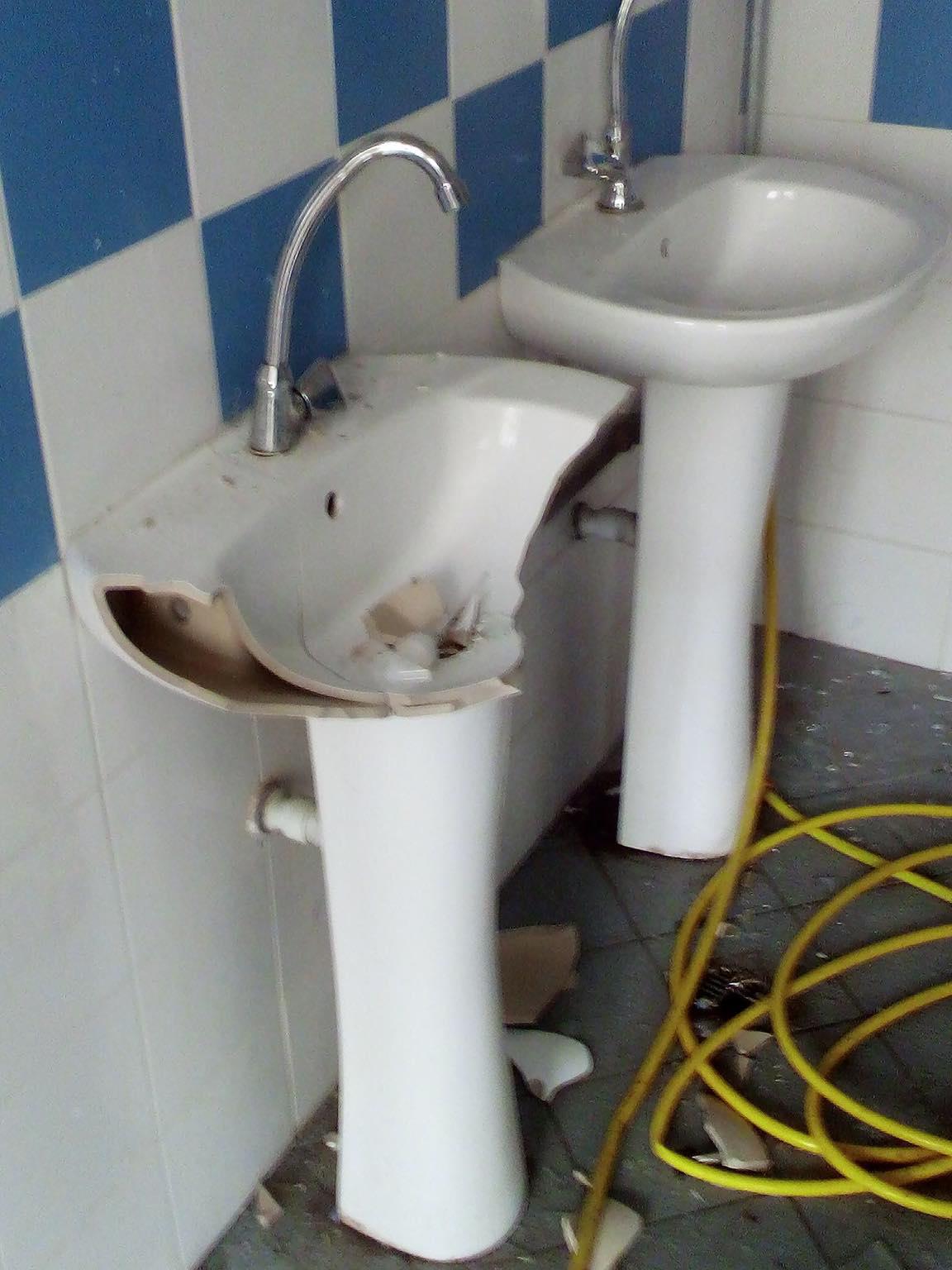 Σπασμένες πόρτες, τουαλέτες, τζάμια.