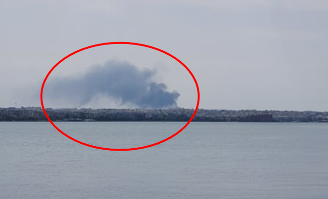 Πυκνός καπνός ορατός από την παραλία Θεσσαλονίκης – Καίγεται αποθήκη
