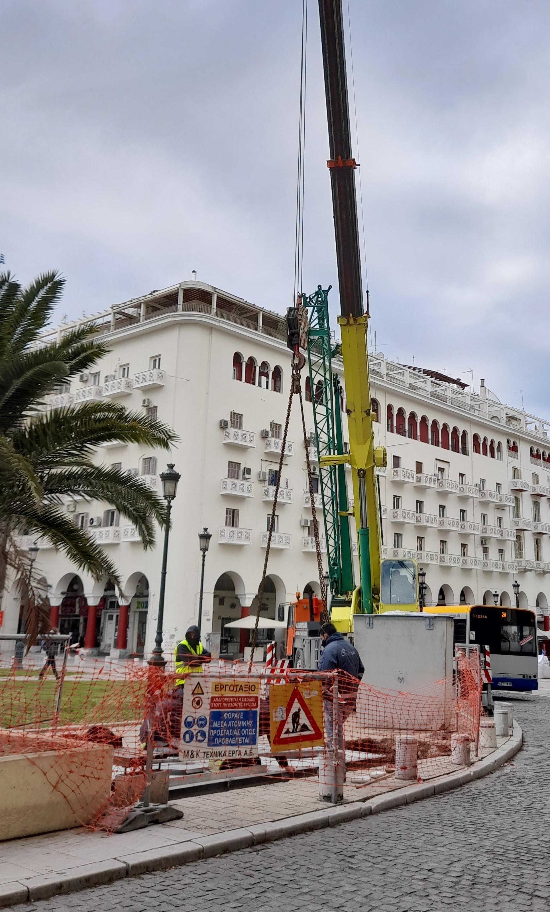 Ξεκίνησαν οι εργασίες για την τοποθέτηση υπόγειων κάδων προσωρινής αποθήκευσης απορριμμάτων στον άξονα της Αριστοτέλους.
