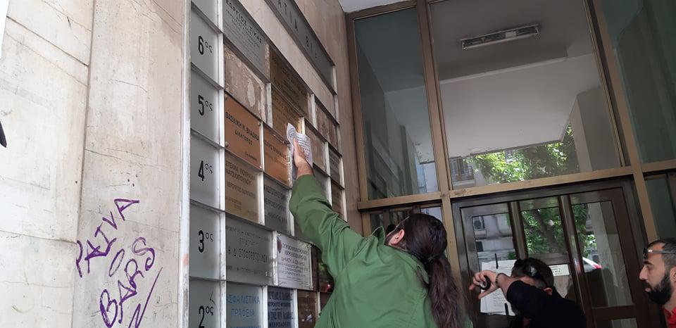 Οι διαδηλωτές επιχείρησαν να ανέβουν στα γραφεία της Ένωσης και τοιχοκόλλησαν αφίσες διαμαρτυρίας στην είσοδο της πολυκατοικίας.