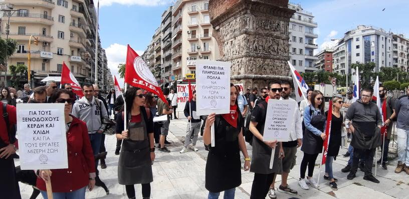 Στα γραφεία της Ένωσης Ξενοδόχων Θεσσαλονίκης, επί της οδού Εγνατίας 81, κατέληξαν τα μέλη του Σωματείου Εργαζομένων σε Τουριστικές και Επισιτιστικές Επιχειρήσεις (ΣΕΤΕΠΕ), για τα προβλήματα του κλάδου που νωρίτερα πραγματοποίησαν πορεία διαμαρτυρίας στην Εγνατία.