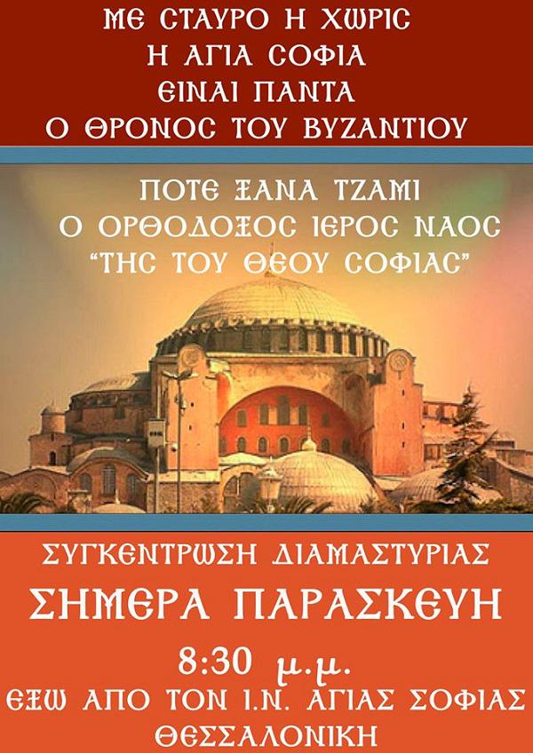 Θεσσαλονίκη- τώρα: Συγκέντρωση διαμαρτυρίας έξω από τον Ιερό Ναό της Αγίας Σοφίας