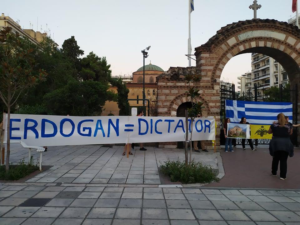 Συγκέντρωση διαμαρτυρίας πραγματοποιείται αυτήν την ώρα έξω από τον Ιερό Ναό της Του Θεού Σοφίας στη Θεσσαλονίκη.