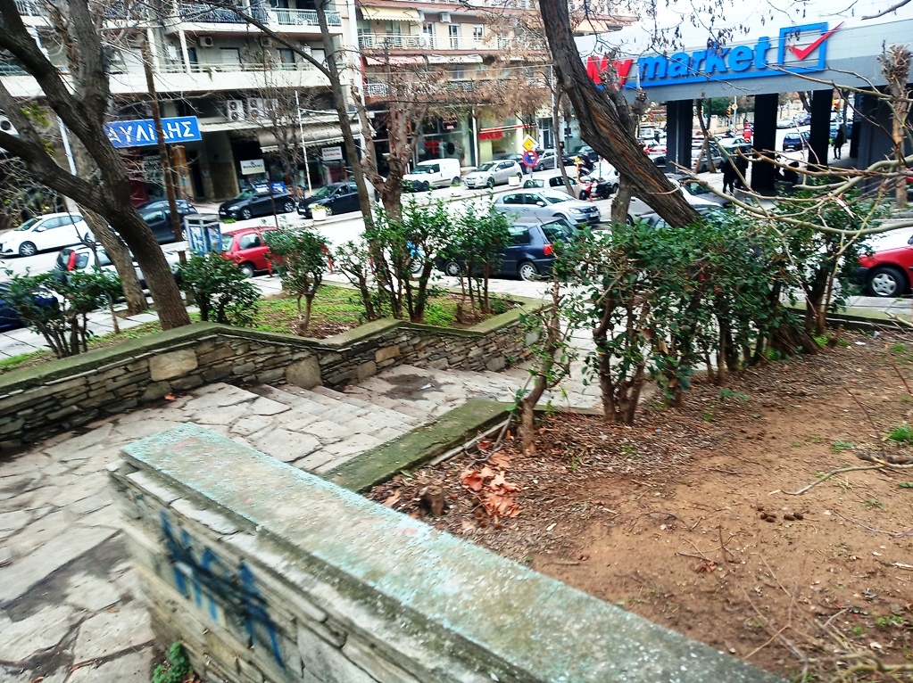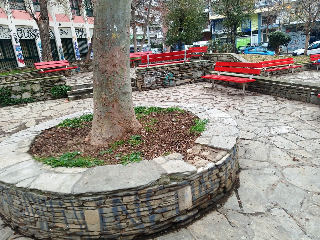 Ωστόσο και η πλατεία δεν βρίσκεται σε καλύτερη κατάσταση. Σπασμένα παγκάκια, απότιστα και ξεραμένα παρτέρια και διαλυμένα πλακόστρωτα, συνθέτουν μία θλιβερή εικόνα, που δεν τιμά κανένα.