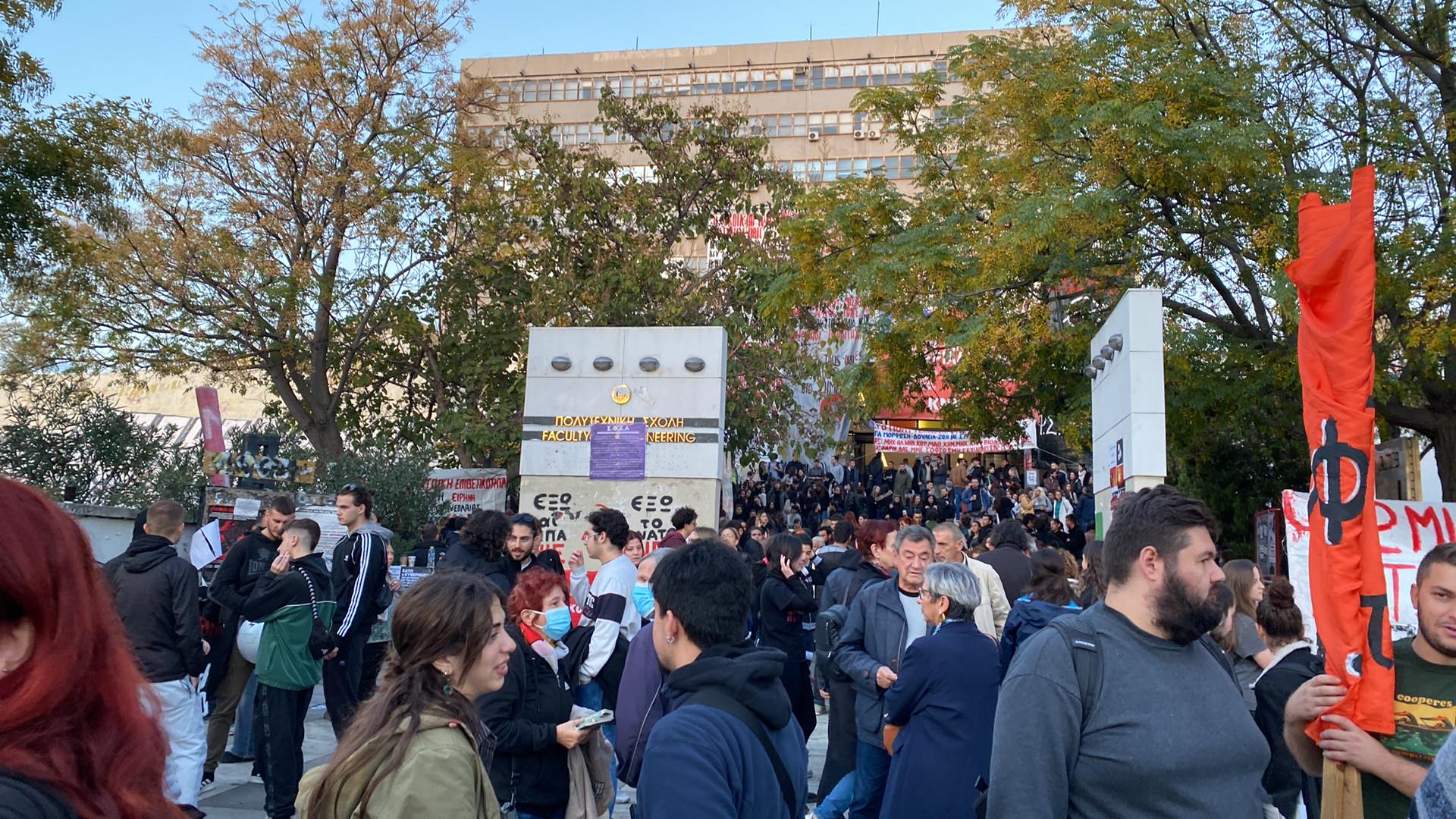Πλήθος κόσμου στην κεντρική είσοδο της Πολυτεχνικής Σχολής του ΑΠΘ – Σε λίγο ξεκινούν οι πορείες στο κέντρο της πόλης