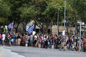Πορεία διαμαρτυρίας πραγματοποιούν αυτήν την ώρα πολίτες που αντιτίθεται στον υποχρεωτικό εμβολιασμού κατά του κορονοϊού.