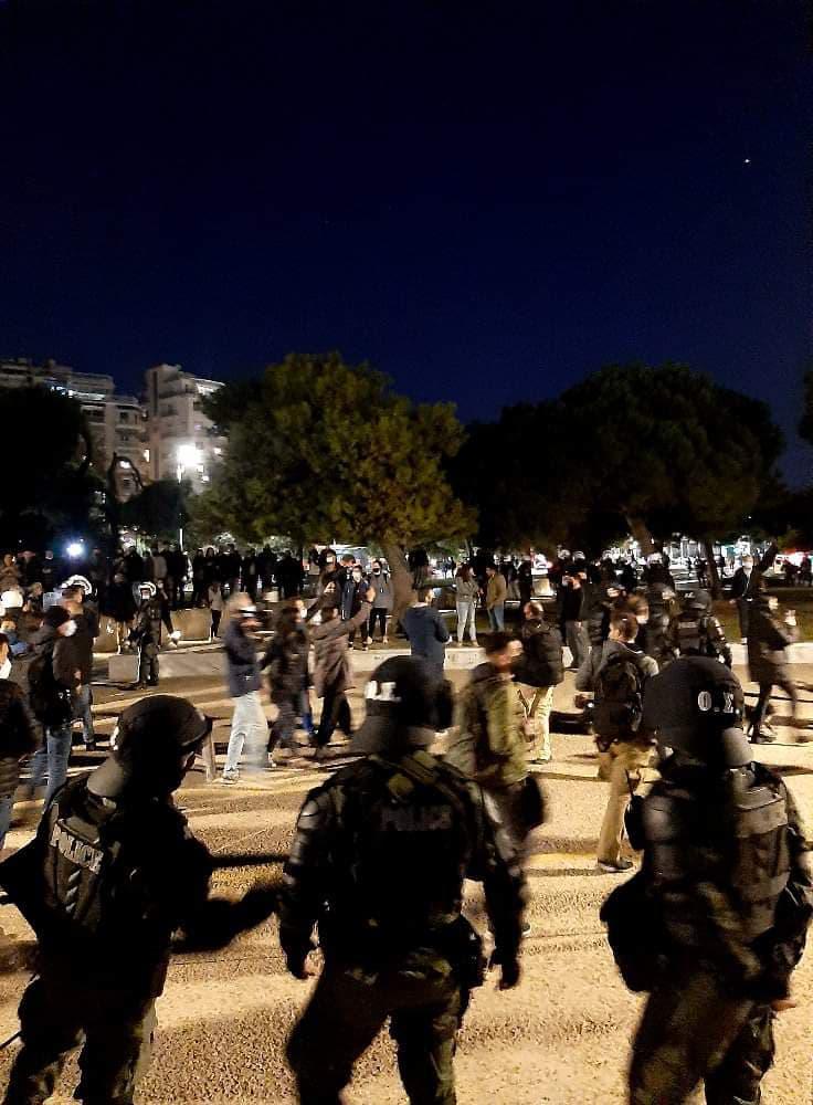 Το κάλεσμα έγινε κυρίως από τα social media πριν δυο μέρες και εστάλη μέσω meσsenger. Οι συγκεντρωμένοι απευθύνονται με βρισιές στους αστυνομικούς.