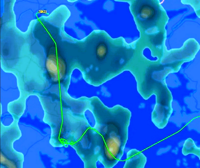 Στην καταγραφή της πτήσης στο flightware φαίνεται η πορεία του αεροσκάφους, πάνω από την Αττική.
