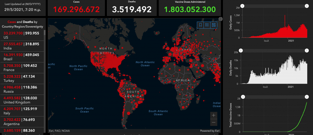 Το ίδιο διάστημα επιβεβαιώθηκαν 79.670 κρούσματα του SARS-CoV-2, με το σύνολο των ανθρώπων που έχουν μολυνθεί από τον ιό να φθάνει τους 16.471.600.